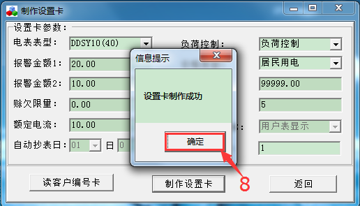 當系統(tǒng)提示“設(shè)置卡制作成功”就可以把讀卡器里面的卡拔出來了,標記上“設(shè)置卡”。(“設(shè)置卡”是通用的,三相四線1.5-6A外接互感器的電表類型除外)