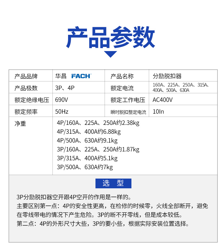 3P分勵脫扣斷路器跟4P分勵脫扣斷路器的作用是一樣的,主要區別和負載電流范圍